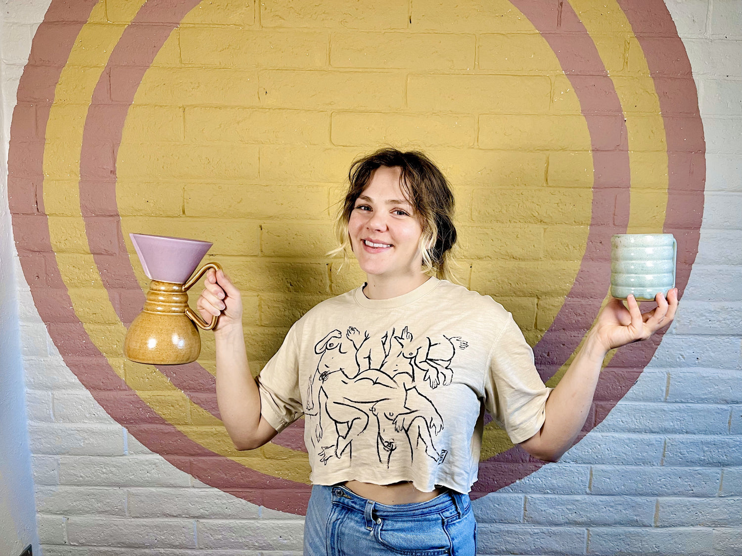 Petra's work is inspired by feminine themes, colors, and forms. If you look closely, there is a butt on every pot -- be it literal or conceptual. Her work stands in opposition to the old guard of potters, that value thumb caps. Petra Mudworks is spunky, sparky and snarky which an extra dash of feminist whimsy.