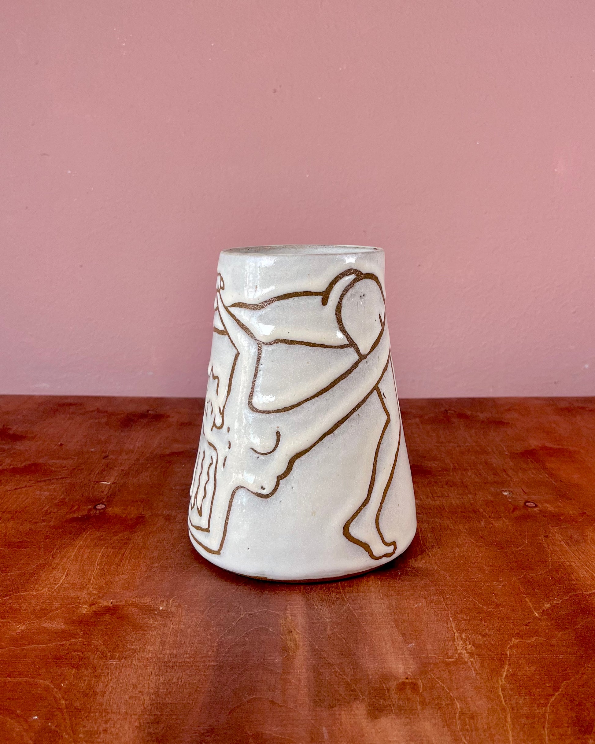 This is one of the prototype Gemini bases. It’s a bit smaller at 6.75” tall and a little more abstract in the glaze.