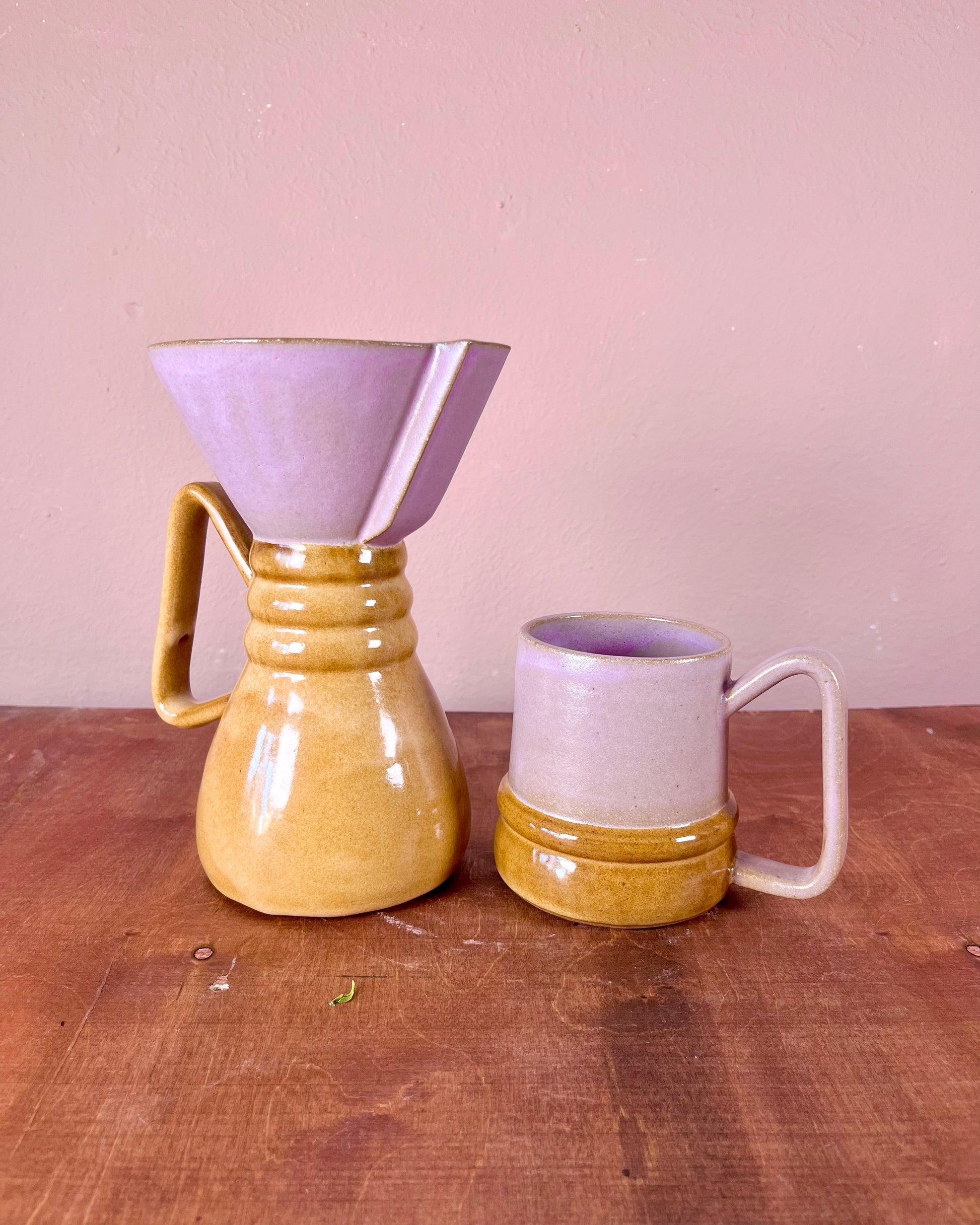 My family always made pourover coffee growing up with the same stained plastic pourover cone, so I got the idea to make each family member their own beautiful carafe for Christmas, hence the names for each style.