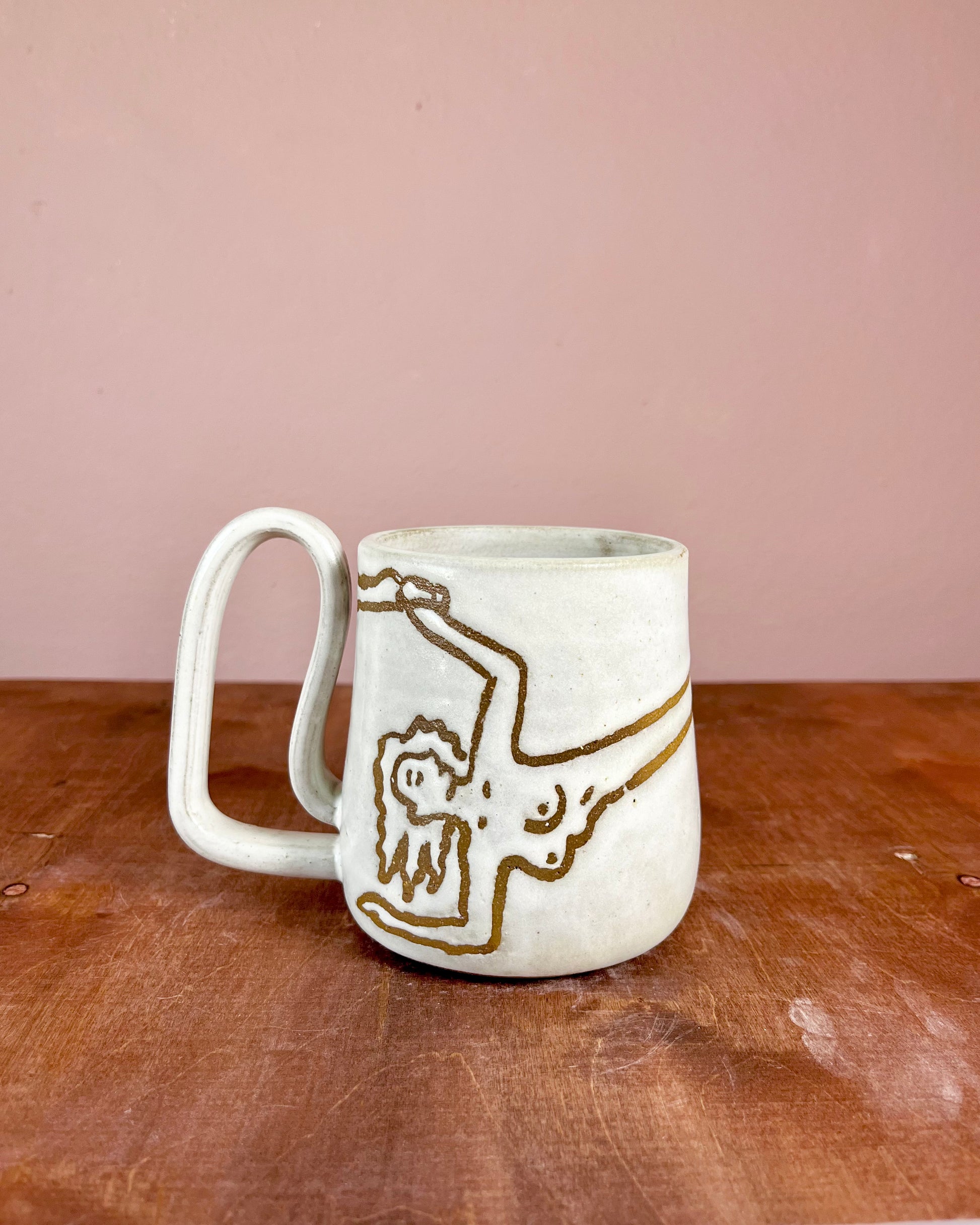 Why not start your day with a morning stretch! The Long Lady tries her hand at yoga! Extra long, extra stretchy! An impossible pose! This 16oz mug with a comfortable cactus arm handle will be your new favorite.