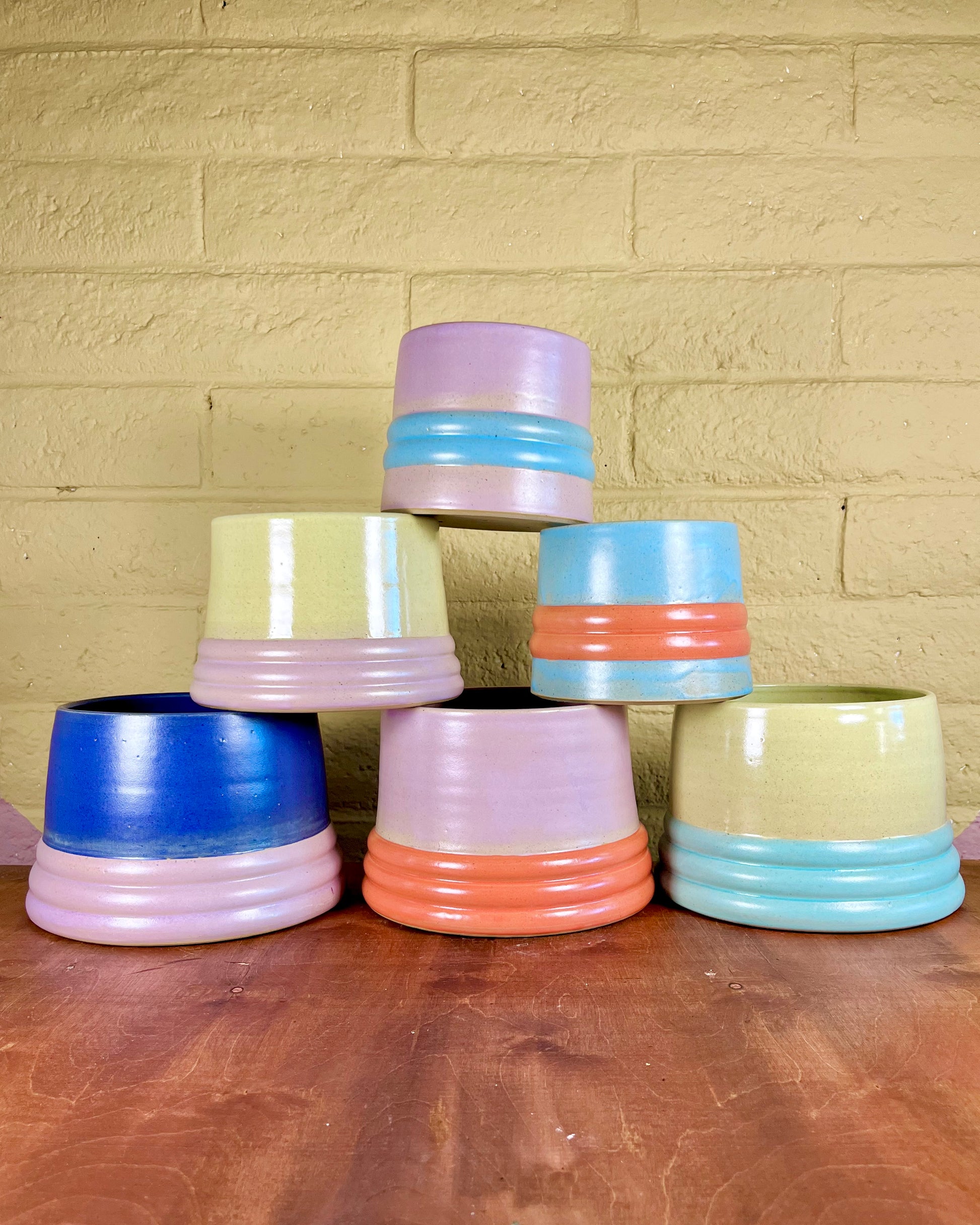 These colorful mod planters are the perfect addition to your space. These 7" planters have drainage holes.